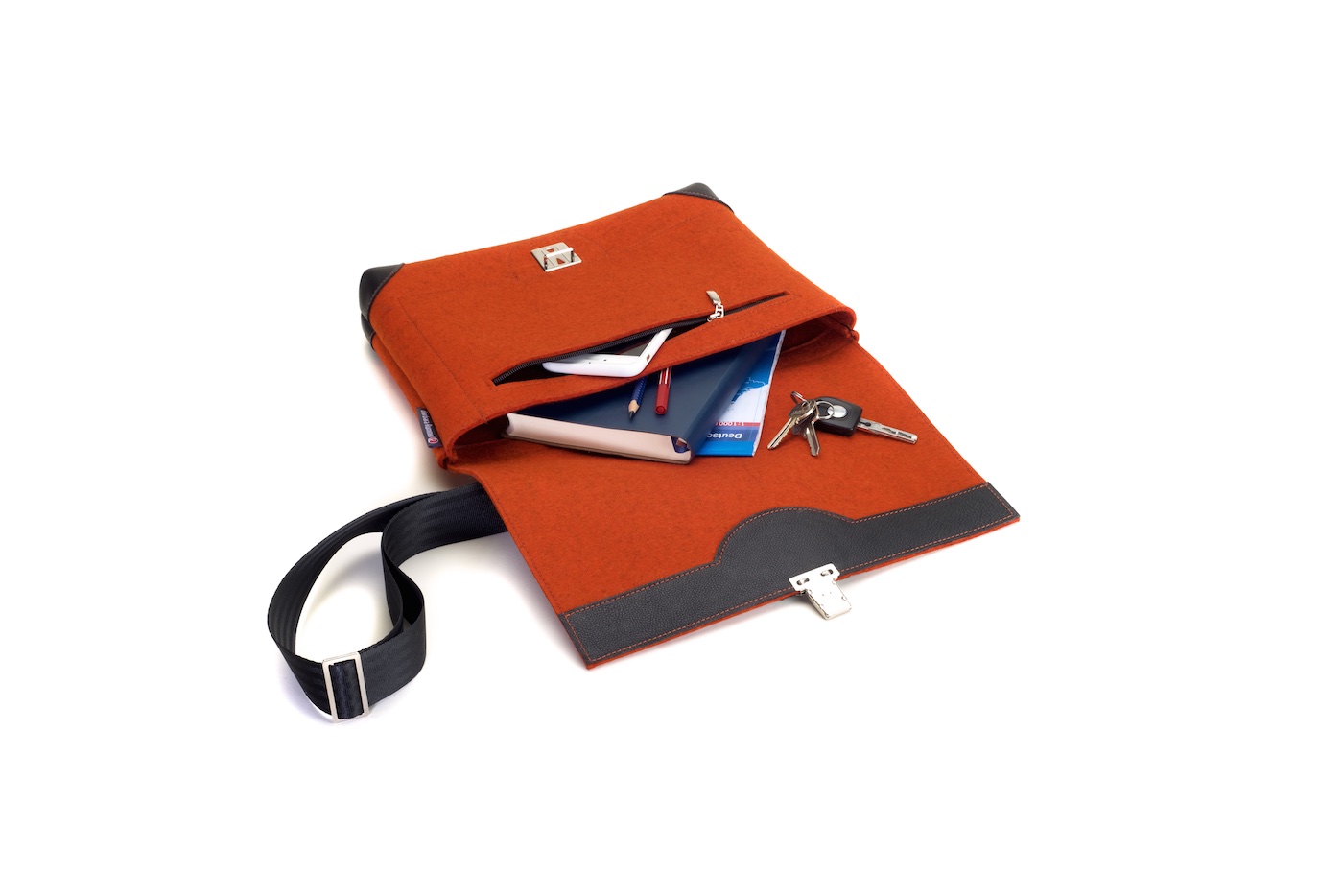 Mit sportlicher Eleganz durch den Alltag und zu vielen Anlässen passend, das ist Lilly, die Umhängetasche. Unter der Klappe befindet sich ein mit einem Reißverschluss versehenes Fach. Im Innenbereich befinden sich neben dem großen Hauptfach zwei Einsteckfächer und ein Steckfach für einen Stift. So ist alles gut organisiert und die wichtigen Dinge sind sofort zur Hand. Die Größe der Tasche ist so bemessen, dass bequem ein Heft oder eine Zeitschrift mitgenommen werden kann. Der Gurt besteht aus Sicherheitsgurtband und ist somit stabil und widerstandsfähig.